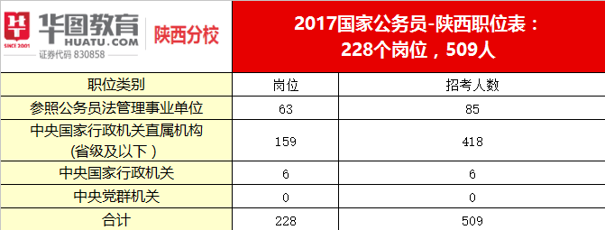 2017国家公务员职位表已公布,陕西华图特整理2017国家公务员考试--陕西职位,供考生参考。陕西华图祝各位考生顺利成“公”。