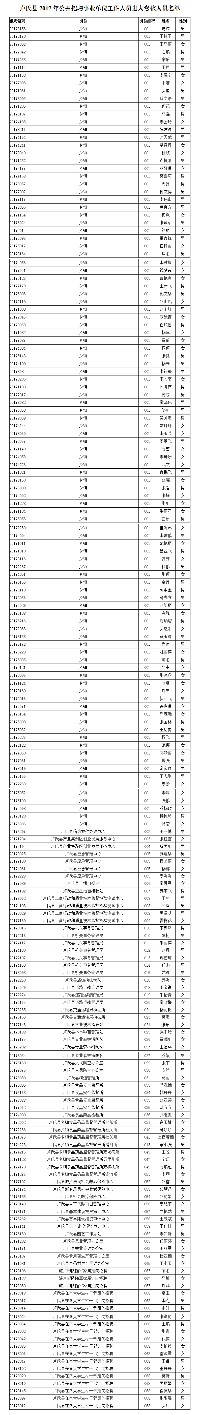 2017年三门峡卢氏县事业单位招聘工作人员考核人员名单