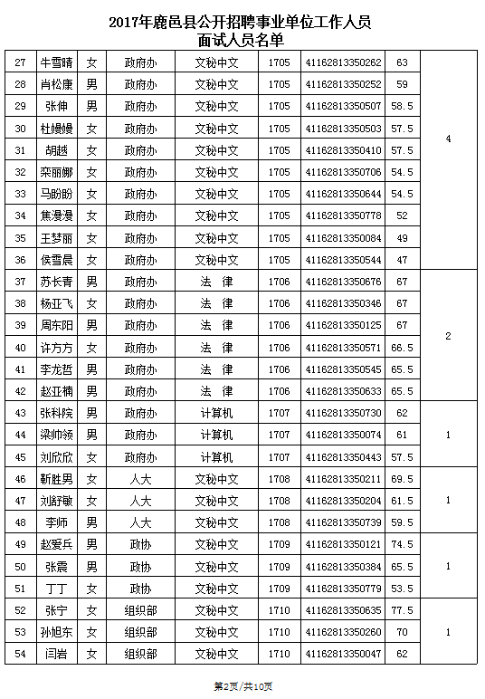 根据《2017年鹿邑县公开招聘事业单位工作人员方案》规定,结合初审情况,现将面试人员名单及相关事宜公示如下: