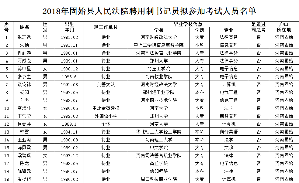 【导读】2018信阳固始县人民法院聘用制书记员拟参加考试人员名单