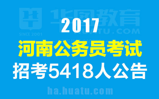 河南省人力资源与社会保障厅于2017年10月31日发布河南省2017年统一考试录用公务员公告(5418人),河南省公安机关2017年统一招录人民警察公告(921人),2017年河南省公务员考试报名时间为11月3日至11月7日,笔试时间为12月16日。>>>>>【公告详情】