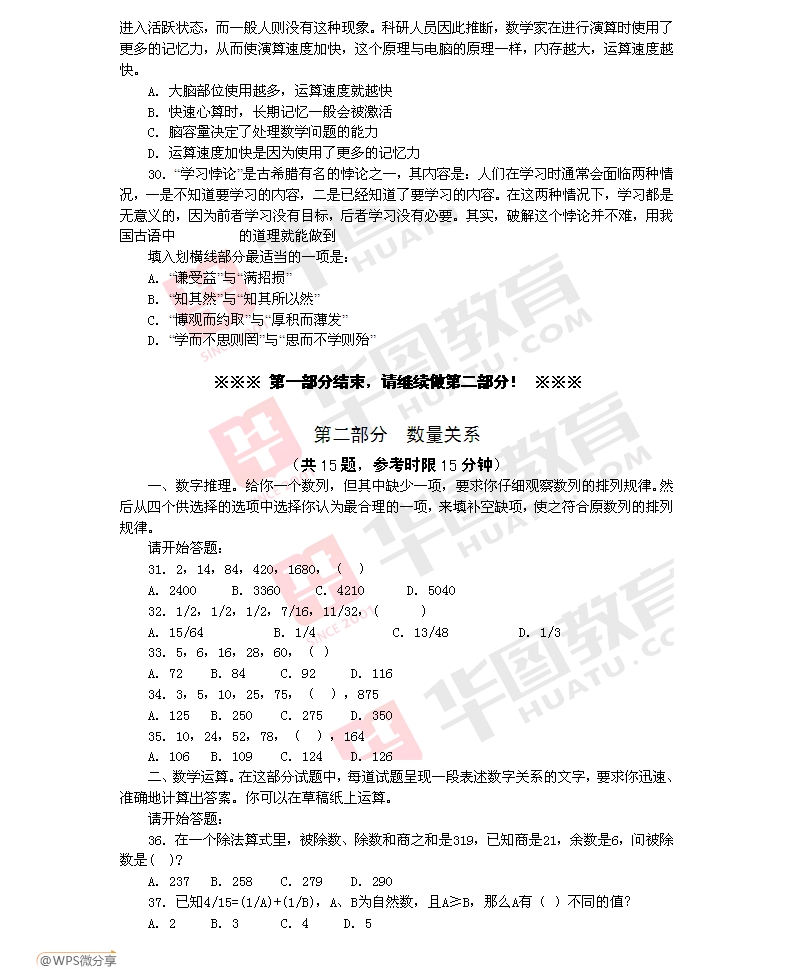 | 数量关系 | 点击考题 | 点击解析 | ||||